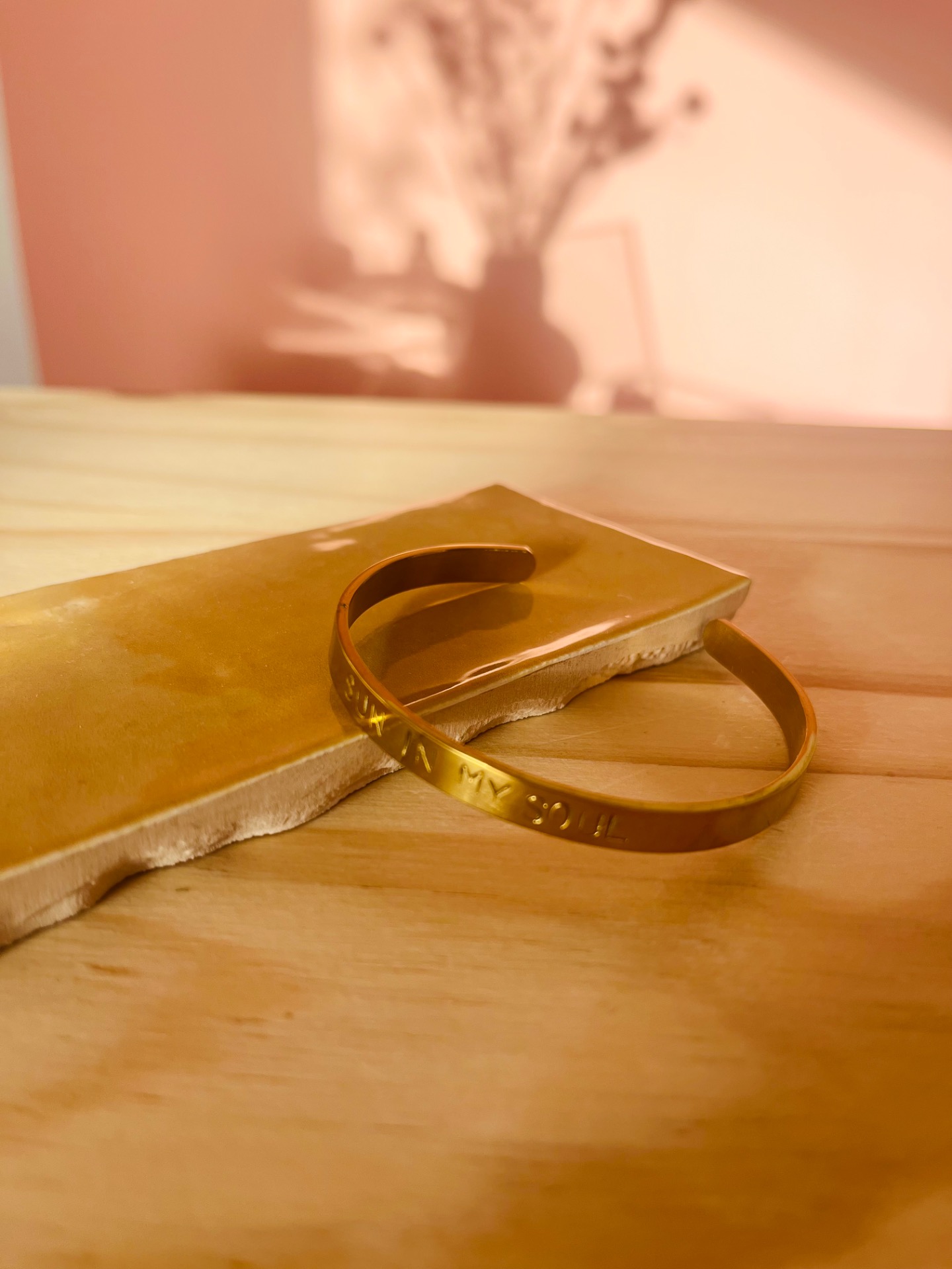 Bracelet mantra en argent aluminium, gravés de jolis mots à porter pour t'amener plein de good vibes.