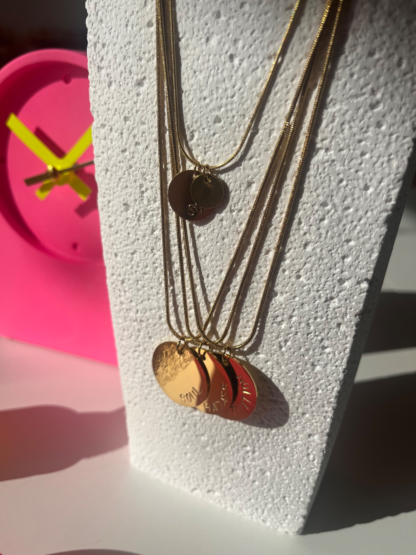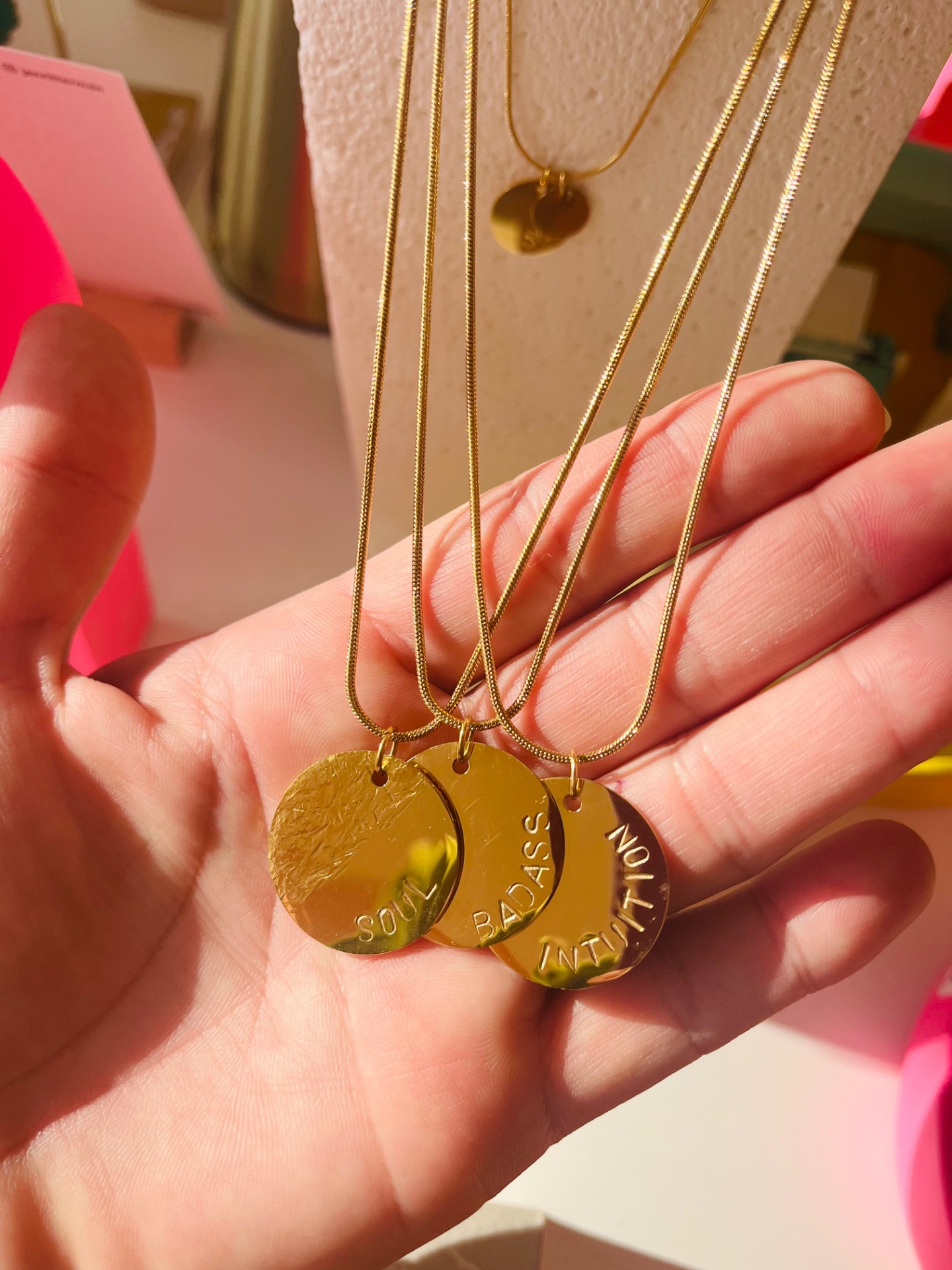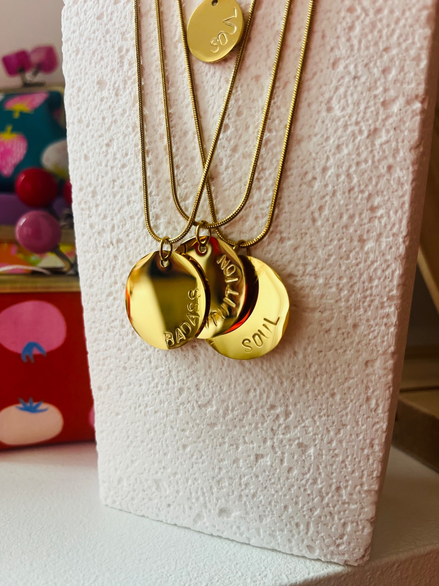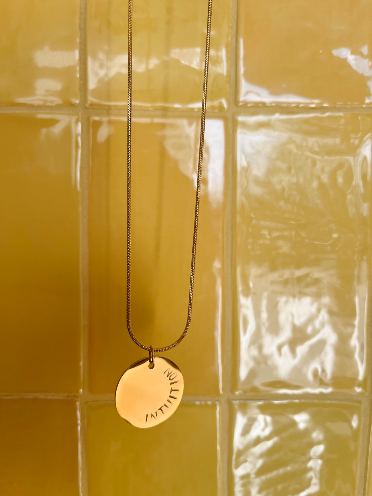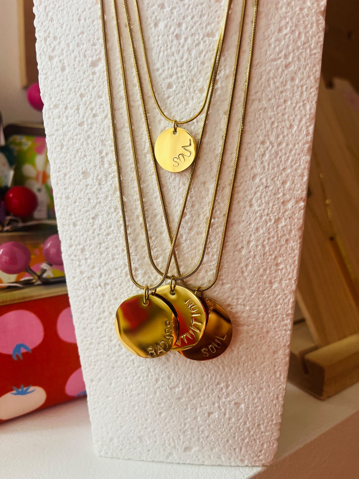 Collier doré amulette avec un joli mantra qui t'accompagnera...